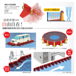 - ゲリラ豪雨・台風時の応急的な水害対策に有効